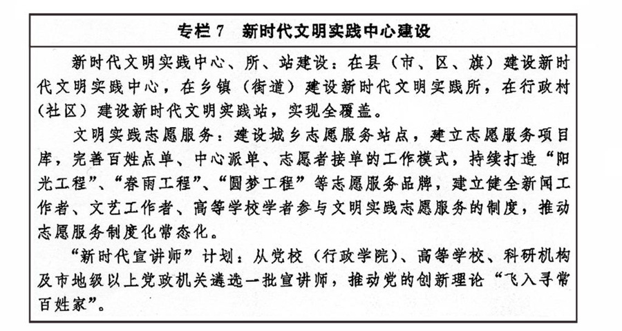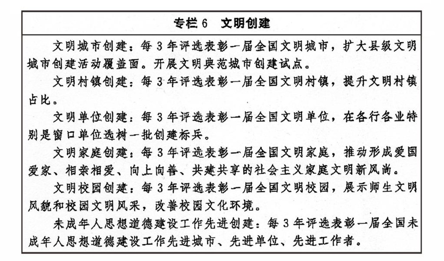 以實施文明創(chuàng)建工程為抓手,推動文明培育、文明實踐、文明創(chuàng)建不斷深入。創(chuàng)造性開展文明城市、文明村鎮(zhèn)、文明單位、文明家庭、文明校園和未成年人思想道德建設(shè)工作先進等精神文明創(chuàng)建活動,拓展新時代文明實踐中心建設(shè)。弘揚科學(xué)精神,深入開展愛國衛(wèi)生運動,深化文明餐桌行動和“光盤行動”,倡導(dǎo)文明健康、綠色環(huán)保的生活方式。健全志愿服務(wù)體系,廣泛開展志愿服務(wù)關(guān)愛行動。加強網(wǎng)絡(luò)文明建設(shè)。