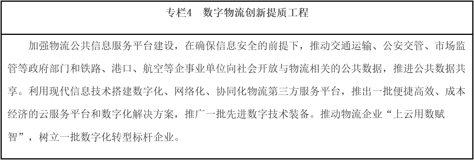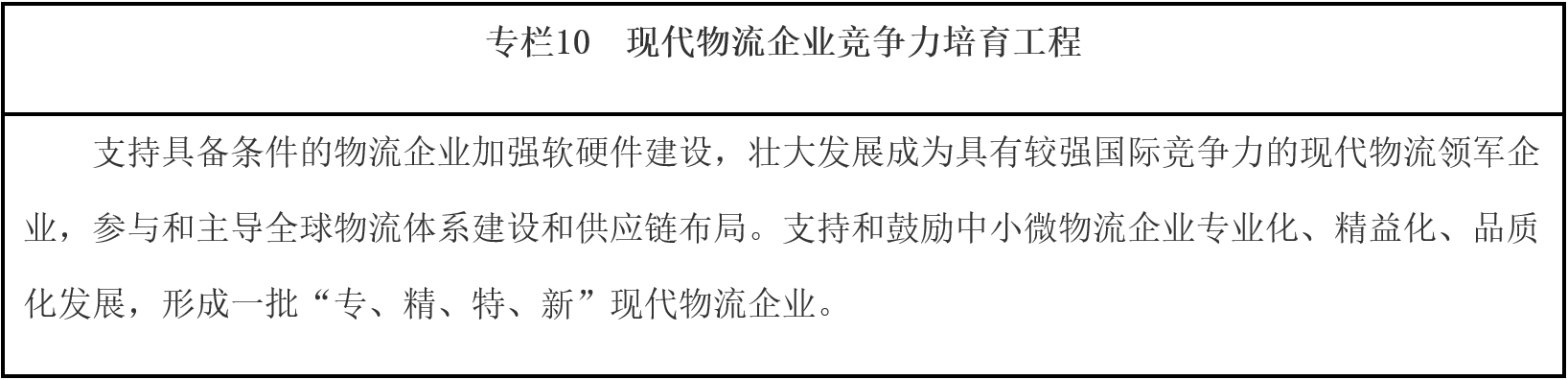 ——物流創(chuàng)新發(fā)展能力和企業(yè)競爭力顯著增強。物流數字化轉型取得顯著成效,智慧物流應用場景更加豐富。物流科技創(chuàng)新能力不斷增強,產學研結合機制進一步完善,建設一批現代物流科創(chuàng)中心和國家工程研究中心。鐵路、民航等領域體制改革取得顯著成效,市場活力明顯增強,形成一批具有較強國際競爭力的骨干物流企業(yè)和知名服務品牌。