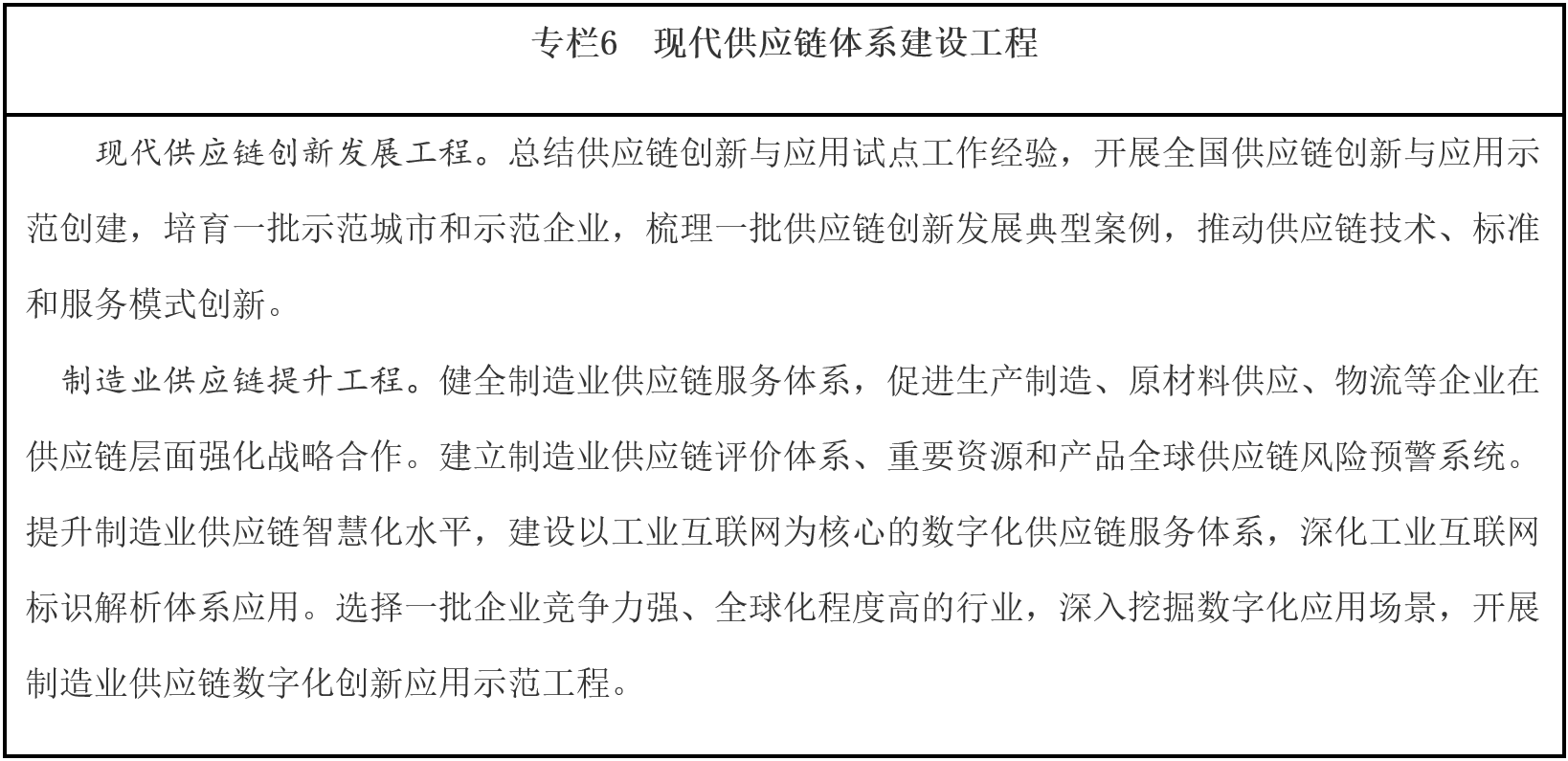 提升現代供應鏈運行效率。推進重點產業(yè)供應鏈體系建設,發(fā)揮供應鏈核心企業(yè)組織協(xié)同管理優(yōu)勢,搭建供應鏈協(xié)同服務平臺,提供集貿易、物流、信息等多樣化服務于一體的供應鏈創(chuàng)新解決方案,打造上下游有效串接、分工協(xié)作的聯動網絡。加強數字化供應鏈前沿技術、基礎軟件、先進模式等研究與推廣,探索擴大區(qū)塊鏈技術應用,提高供應鏈數字化效率和安全可信水平。規(guī)范發(fā)展供應鏈金融,鼓勵銀行等金融機構在依法合規(guī)、風險可控的前提下,加強與供應鏈核心企業(yè)或平臺企業(yè)合作,豐富創(chuàng)新供應鏈金融產品供給。