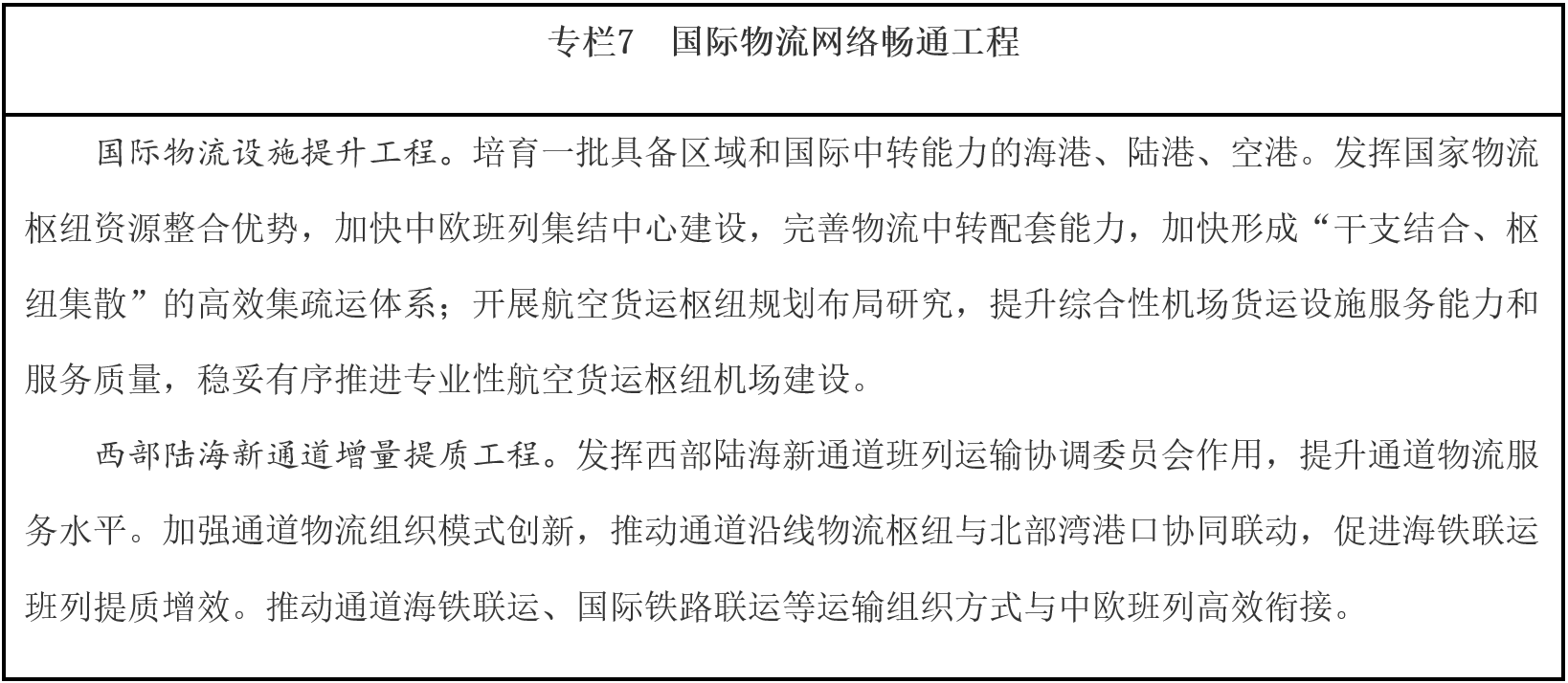 發(fā)展物流通道經濟。圍繞共建“一帶一路”、長江經濟帶發(fā)展等重大戰(zhàn)略實施和西部陸海新通道建設,提升“四橫五縱、兩沿十廊”物流大通道沿線物流基礎設施支撐和服務能力,密切通道經濟聯系,優(yōu)化通道沿線產業(yè)布局與分工合作體系,提高產業(yè)組織和要素配置能力。