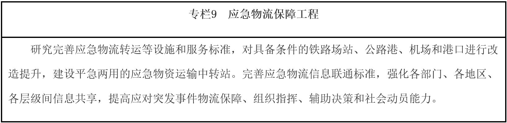 統(tǒng)籌發(fā)展和安全,強化重大物流基礎設施安全和信息安全保護,提升戰(zhàn)略物資、應急物流、國際供應鏈等保障水平,增強經濟社會發(fā)展韌性。健全大宗商品物流體系。加快構建全球供應鏈物流服務網絡,保持產業(yè)鏈供應鏈穩(wěn)定。充分發(fā)揮社會物流作用,推動建立以企業(yè)為主體的應急物流隊伍。