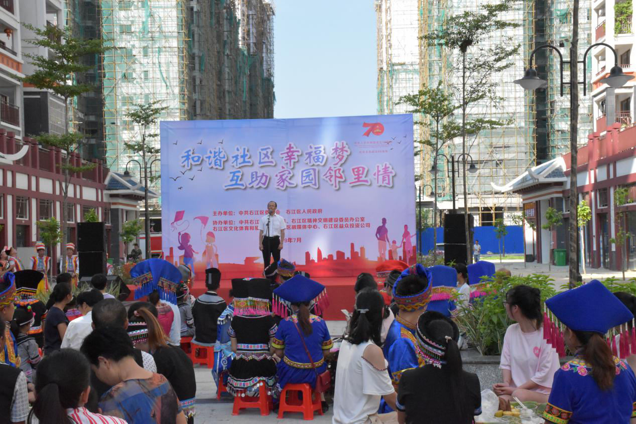 ??????????? 2019年7月27日,為慶祝新中國(guó)成立70周年,紀(jì)念百色起義90周年,由區(qū)委宣傳部組織的2019百色市右江區(qū)《我和我的祖國(guó)》大型快閃表演活動(dòng)分會(huì)場(chǎng)暨第二屆“老鄉(xiāng)家園”鄰里節(jié),在老鄉(xiāng)家園-迎龍易地扶貧搬遷安置小鎮(zhèn)舉行。右江區(qū)區(qū)委常委、宣傳部部長(zhǎng)、區(qū)人民政府副區(qū)長(zhǎng)王世凡等,以及區(qū)直相關(guān)部門領(lǐng)導(dǎo)和公司有關(guān)領(lǐng)導(dǎo)參加此次活動(dòng)。