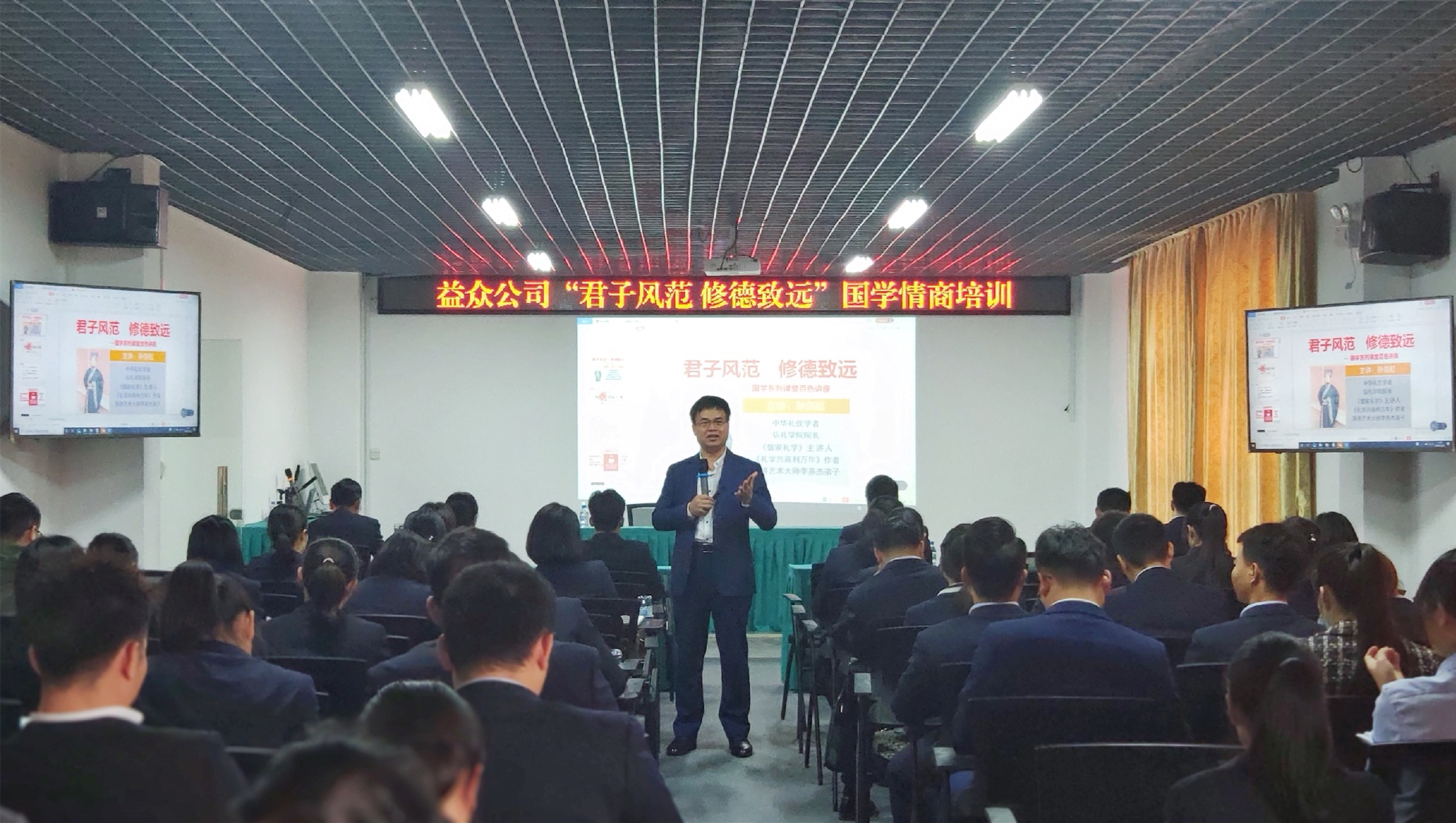 ????????為進(jìn)一步提升公司員工職業(yè)素養(yǎng),加深對(duì)傳統(tǒng)文化的了解和學(xué)習(xí),近日,益眾公司開(kāi)展“君子風(fēng)范 修德致遠(yuǎn)”國(guó)學(xué)情商培訓(xùn),公司百余名員工在老鄉(xiāng)家園辦公區(qū)3樓會(huì)議室參加了培訓(xùn)。
