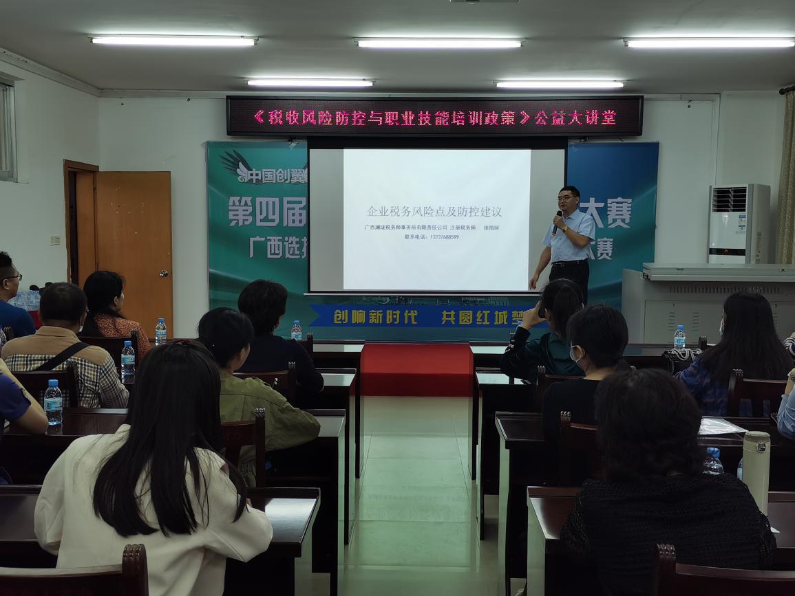 ????????本次大講堂由具備注冊(cè)稅務(wù)師資格人員及政府人社行政管理部門職業(yè)建設(shè)負(fù)責(zé)同志授課。稅收風(fēng)險(xiǎn)防控課程包括企業(yè)稅務(wù)風(fēng)險(xiǎn)點(diǎn)與防控、法律法規(guī)、風(fēng)險(xiǎn)防控體系建設(shè)、發(fā)票管理等內(nèi)容,以及結(jié)合案例進(jìn)行講解;職業(yè)技能培方面主要對(duì)職業(yè)技能培訓(xùn)政策解讀,助力行業(yè)企業(yè)合法合規(guī)經(jīng)營(yíng)和各類政策的運(yùn)用。