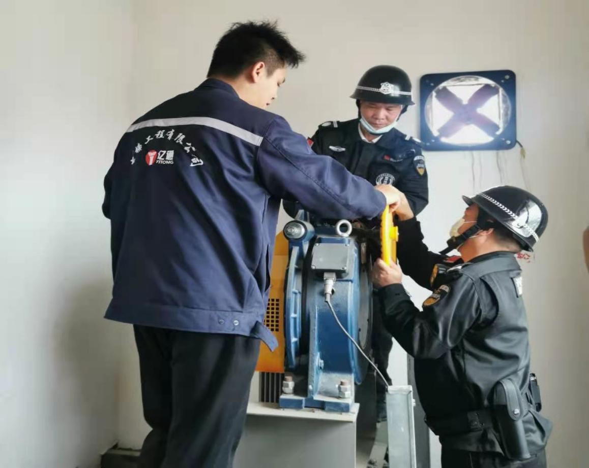 ????????培訓(xùn)期間,電梯維保員給參訓(xùn)人員講解電梯困人時如何使用三角鑰匙開門、機(jī)房如何操作盤車手柄等知識?,F(xiàn)場示范完畢后,參訓(xùn)人員進(jìn)行了實(shí)際操作演練。