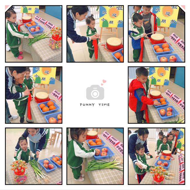 ????????上午7時(shí)40分,孩子們在家長的陪同下來到幼兒園大門口,進(jìn)園時(shí)敲響飽含濃濃祝福的小鼓,用小手觸摸大蔥、蘋果、桔子、棒棒糖,傳遞著益眾幼兒園對(duì)孩子濃濃的愛意和深深的祝福。
