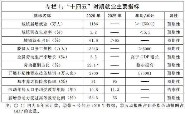——就業(yè)形勢總體平穩(wěn)。城鎮(zhèn)新增就業(yè)5500萬人以上,努力實現(xiàn)更大規(guī)模,城鎮(zhèn)調查失業(yè)率控制在5.5%以內,重點群體就業(yè)保持穩(wěn)定。城鄉(xiāng)、區(qū)域就業(yè)機會差距逐步縮小,勞動力市場供求基本平衡。