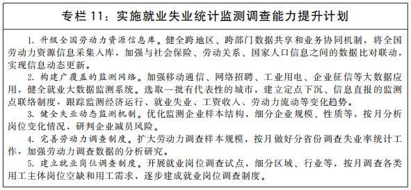 完善就業(yè)失業(yè)統(tǒng)計監(jiān)測調查體系。加快構建系統(tǒng)完備、立體化的就業(yè)失業(yè)監(jiān)測網絡,實現(xiàn)勞動力市場、企業(yè)用工主體和勞動者個體全覆蓋,全面反映就業(yè)增長、失業(yè)水平、市場供求狀況。完善就業(yè)統(tǒng)計指標體系和調查統(tǒng)計方法,探索進行就業(yè)質量、就業(yè)穩(wěn)定性等方面的分析。推進大數(shù)據(jù)在就業(yè)統(tǒng)計監(jiān)測領域的應用。
