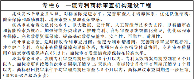 提高知識(shí)產(chǎn)權(quán)審查質(zhì)量和審查效率。完善適應(yīng)創(chuàng)新發(fā)展需求的知識(shí)產(chǎn)權(quán)審查管理體系,優(yōu)化專(zhuān)利、商標(biāo)審查協(xié)作機(jī)制。提升專(zhuān)利商標(biāo)審查機(jī)構(gòu)能力水平,強(qiáng)化專(zhuān)利、商標(biāo)、版權(quán)、地理標(biāo)志、植物新品種全流程審查質(zhì)量管控,提升知識(shí)產(chǎn)權(quán)授權(quán)確權(quán)質(zhì)量。提高專(zhuān)利、商標(biāo)審查業(yè)務(wù)精細(xì)化管理水平,優(yōu)化審查資源配置,加強(qiáng)智能化技術(shù)運(yùn)用,提升審查效能,縮短審查周期。完善專(zhuān)利、商標(biāo)審查模式,加強(qiáng)審查與產(chǎn)業(yè)發(fā)展的政策協(xié)同和業(yè)務(wù)聯(lián)動(dòng),滿(mǎn)足產(chǎn)業(yè)綠色轉(zhuǎn)型和新領(lǐng)域新業(yè)態(tài)創(chuàng)新發(fā)展等社會(huì)多樣化需求。(中央宣傳部、工業(yè)和信息化部、農(nóng)業(yè)農(nóng)村部、國(guó)家林草局、國(guó)家知識(shí)產(chǎn)權(quán)局等按職責(zé)分工負(fù)責(zé))