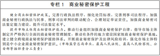 健全知識(shí)產(chǎn)權(quán)法律法規(guī)。開(kāi)展知識(shí)產(chǎn)權(quán)基礎(chǔ)性法律研究。統(tǒng)籌推進(jìn)專(zhuān)利法、商標(biāo)法、著作權(quán)法、反壟斷法、科學(xué)技術(shù)進(jìn)步法、電子商務(wù)法等相關(guān)法律法規(guī)的修改完善。加強(qiáng)地理標(biāo)志、商業(yè)秘密等領(lǐng)域立法,出臺(tái)商業(yè)秘密保護(hù)規(guī)定。完善集成電路布圖設(shè)計(jì)法規(guī)。推進(jìn)修訂植物新品種保護(hù)條例。制定中醫(yī)藥傳統(tǒng)知識(shí)保護(hù)條例。完善與國(guó)防建設(shè)相銜接的知識(shí)產(chǎn)權(quán)法律制度。全面建立并實(shí)施知識(shí)產(chǎn)權(quán)侵權(quán)懲罰性賠償制度,加大損害賠償力度。研究建立健全符合知識(shí)產(chǎn)權(quán)審判規(guī)律的特別程序法律制度。適應(yīng)科技進(jìn)步和經(jīng)濟(jì)社會(huì)發(fā)展需要,依法及時(shí)推動(dòng)知識(shí)產(chǎn)權(quán)法律法規(guī)立改廢釋。(中央宣傳部、最高人民法院、最高人民檢察院、科技部、工業(yè)和信息化部、司法部、農(nóng)業(yè)農(nóng)村部、商務(wù)部、國(guó)家衛(wèi)生健康委、市場(chǎng)監(jiān)管總局、國(guó)家國(guó)防科工局、國(guó)家林草局、國(guó)家中醫(yī)藥局、國(guó)家知識(shí)產(chǎn)權(quán)局、中央軍委裝備發(fā)展部等按職責(zé)分工負(fù)責(zé))